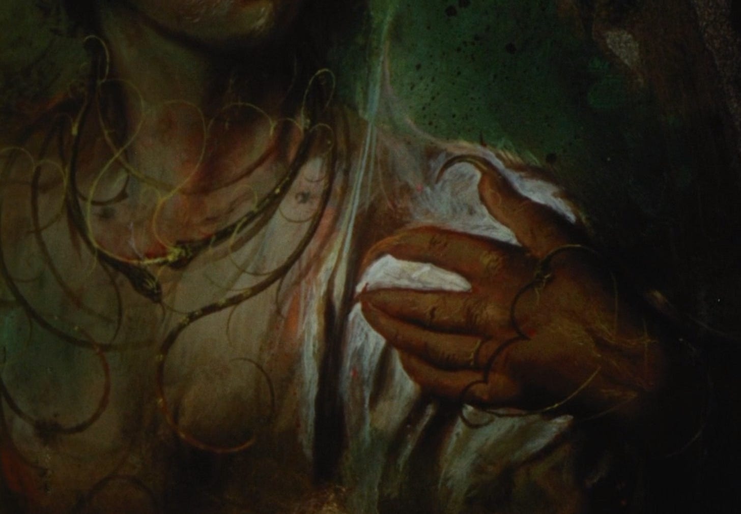 It must be said that the quality of the various paintings made for the film is astonishing - from the strange Bosch-esque images in the opening credits, to the portrait of Julie’s mother, to the monstrous paintings in the Beast’s estate, it was all done to an incredibly high standard.