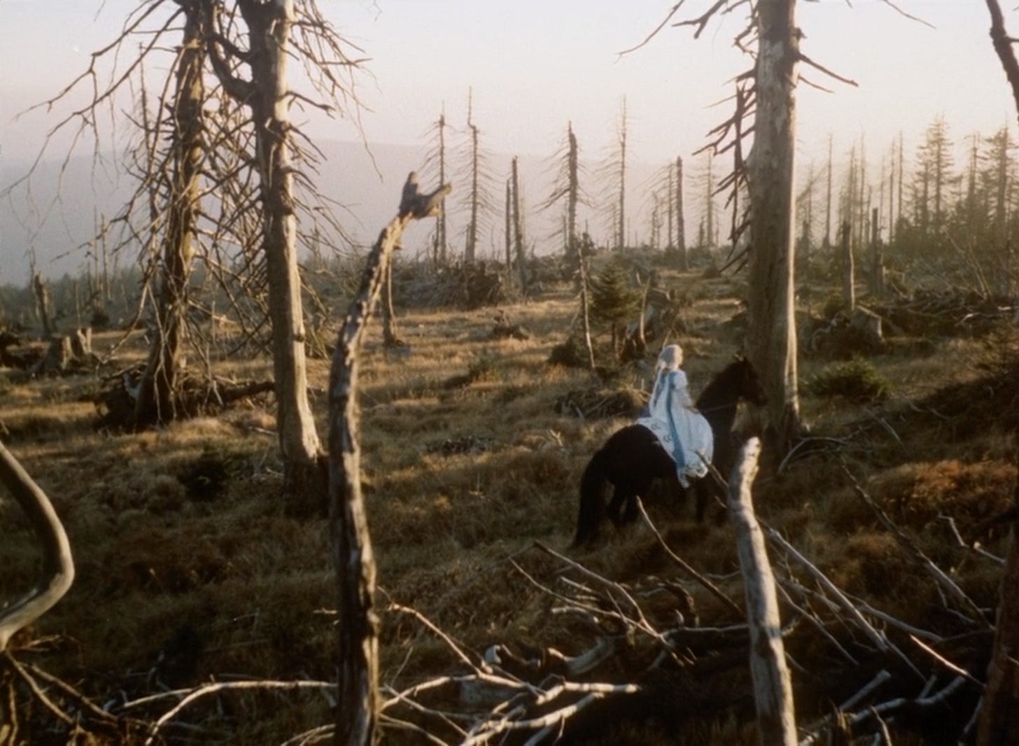 Far from Disney’s fluffy sing along,2 Panna a Netvor (literally: ‘The Virgin and the Monster’) is… actually very dark. In fact, it’s so dark that it’s often categorised as a horror film, and it does feel like horror for about 90% of its runtime. The director, Juraj Herz, is best known for The Cremator, a horror-comedy about [checks notes] a Nazi corpse-disposal guy,3 so if anything Panna a Netvor was a relatively light follow-up, and it does offer some much-needed relief in the form of romantic drama.