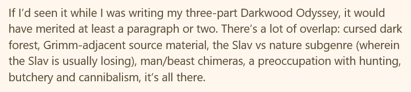 If you liked this post, you may also enjoy my recent post on medievalism in film, which covers a number of Soviet and Czechoslovak classics among others. Part 2 of my Darkwood series also touches on fairy tales, cannibalism and Soviet film.