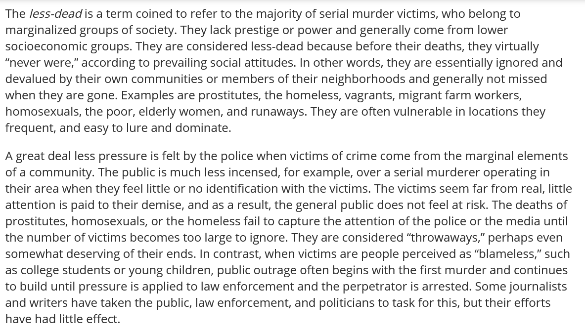 This subtext is strong in Interview, especially the first act - it’s no coincidence that the vampires, two wealthy white men, begin their spree by preying on the slaves on Louis’ plantation, and are otherwise shown to prey primarily on the poor and marginalised, especially prostitutes from Louisiana’s black and mixed race population. These women are far below them in the societal pecking order, and can be targeted with relative impunity. Although Lestat is said to prefer wealthy white victims due to ‘the snob in him’, most of the victims that we actually see are neither wealthy nor white - in this, his predation strongly resembles that of real-life serial killers, and it’s notable that the novel’s 1976 publication more or less coincides with the peak of the serial killer phenomenon in the United States.