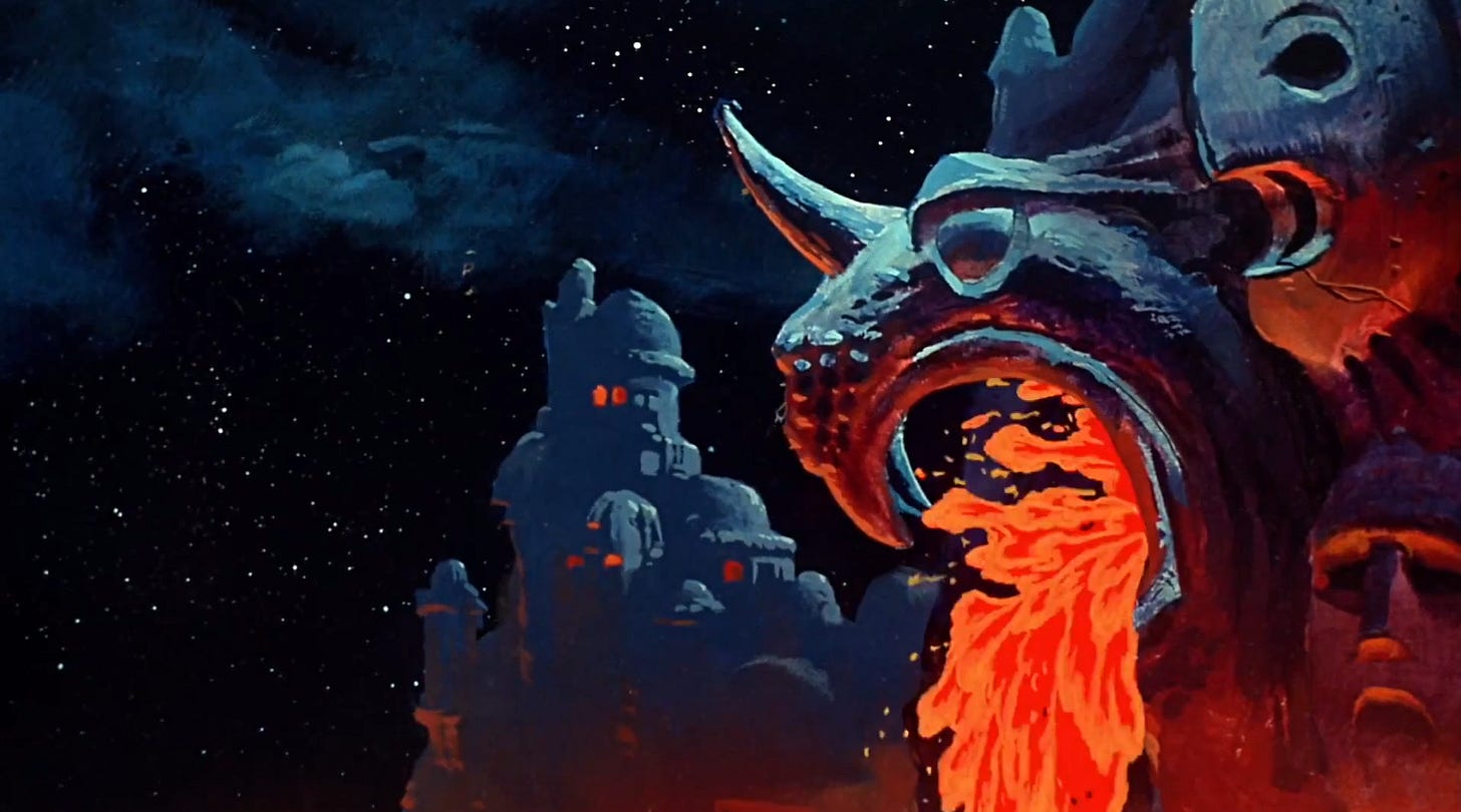 Fire and Ice is basically just all of that, and more. Add in witches,1 more ape-men, wolves, the greatest lava castle you’ve ever seen, pterodactyl-riders, an aggressively gay-coded sorcerer, his overbearing mother, the Watcher in the Water, and a deuteragonist who lives for revenge, and that’s Fire and Ice. It’s an experience.