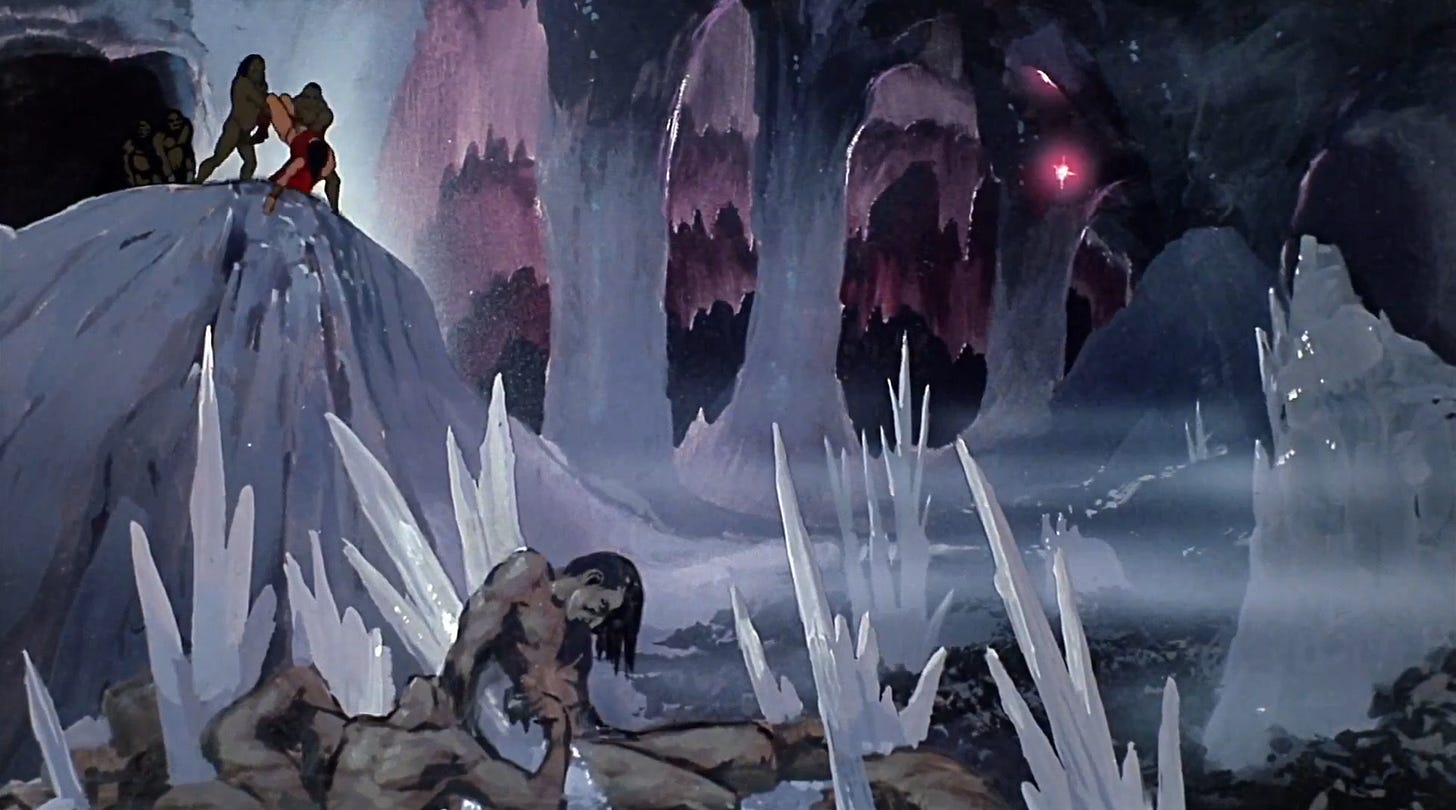 Because the story is straightforward, it moves quickly; because the characters are simple, embodying familiar archetypes, they are both vivid and easily legible. Fire and Ice requires very little in the way of exposition or introductory scenes, and because of this, every scene is purposeful and to the point. The film is only 81 minutes long, a full forty minutes shorter than Star Wars, a similarly tropey adventure film, and nearly fifty minutes shorter than Conan the Barbarian, the John Milius film of the previous year which gave Fire and Ice impetus.