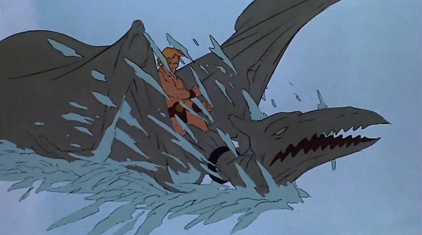 During a climactic, pterodactyl-intensive final battle, Darkwolf confronts Nekron on a giant hand,2 and by sheer force of will manages to break through Nekron’s magical defenses and bury an axe in him. Firekeep erupts, and without Nekron’s magic to sustain it, Icepeak is destroyed.