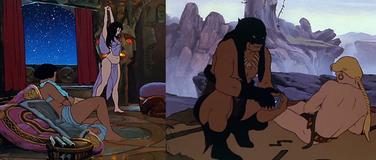This is par for the course with Bakshi and Frazetta, who are both, to put it mildly, big admirers of the female form - put them together, and it was absolutely inevitable that they would spend their time avidly drawing boobs, and consider the development of the character they were attached to an afterthought. Further, the film’s female representation beyond Teegra consists largely of evil witches, one of whom is also someone’s overbearing mother. Basically, it’s the kind of film where women are either sexy, antagonistic, or both, which is pretty typical of 80s sword and sorcery.8